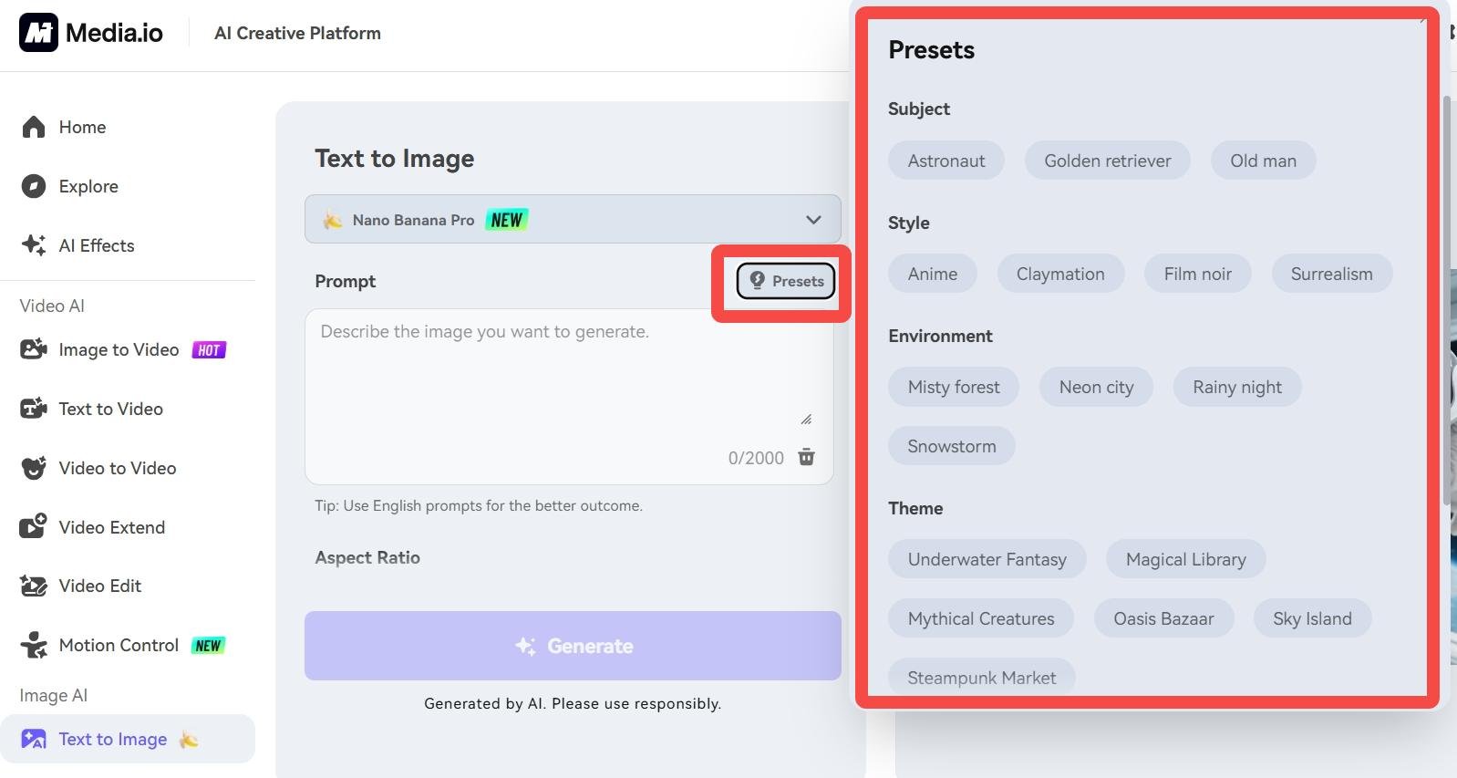 The process to convert text to image with Media.io is refreshingly simple and browser-based.